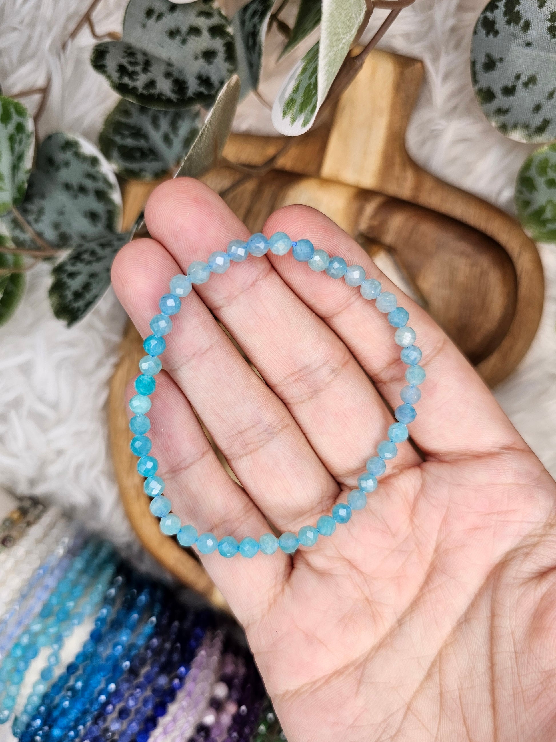 4mm Facetted Amethyst, Aquamarine, Blue Lace, Ruby Zoisite, Lapis Lazuli, Sodlite, Tourmaline, Lepidolite, Malachite, Apatite, Amazonite Moonstone Bracelet - MAS0991