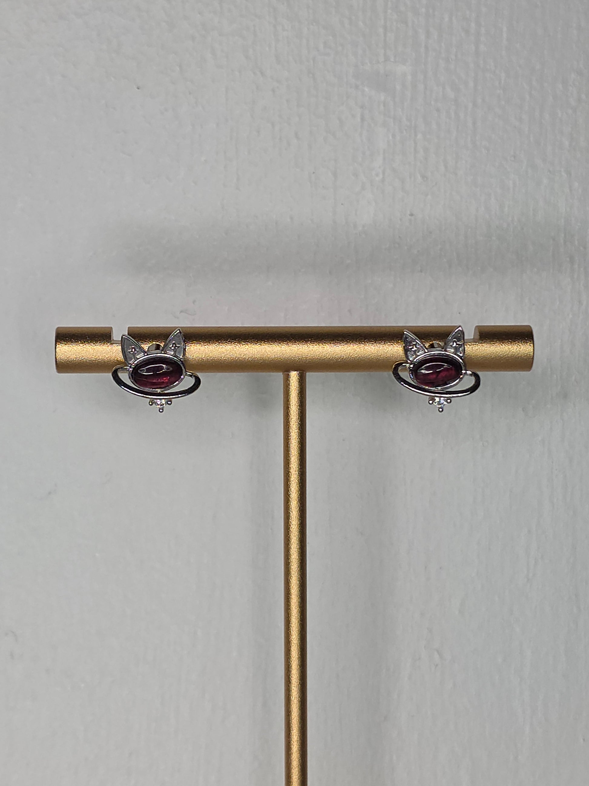 Red Mica Space Cat Earrings with S925 Posts