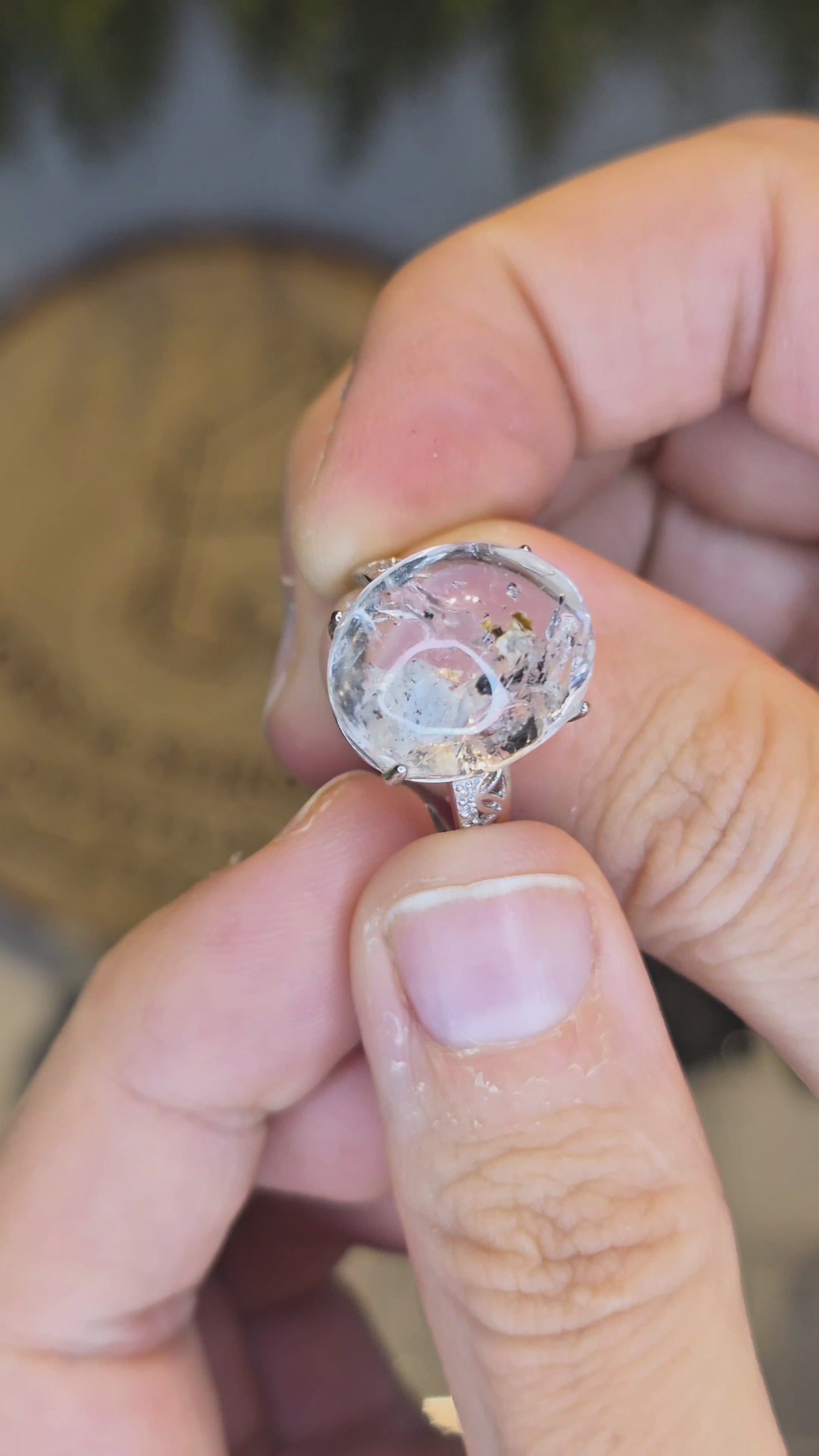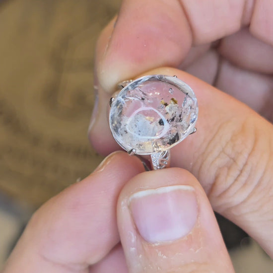 S925 Silver Carbon Enhydro Himalayan Quartz Adjustable Ring