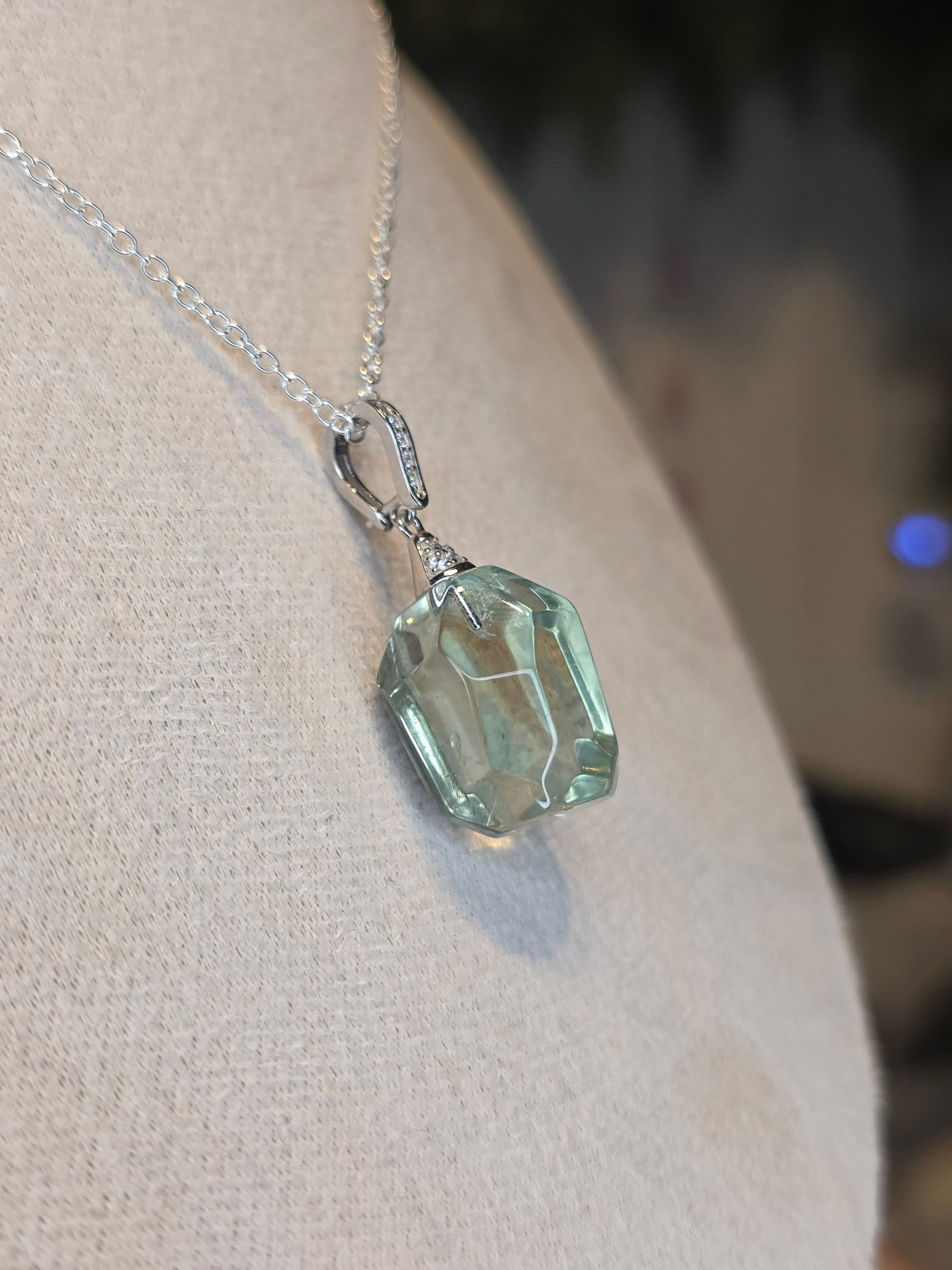 S925 Silver Green Quartz Prasiolite with Moissanite Necklace