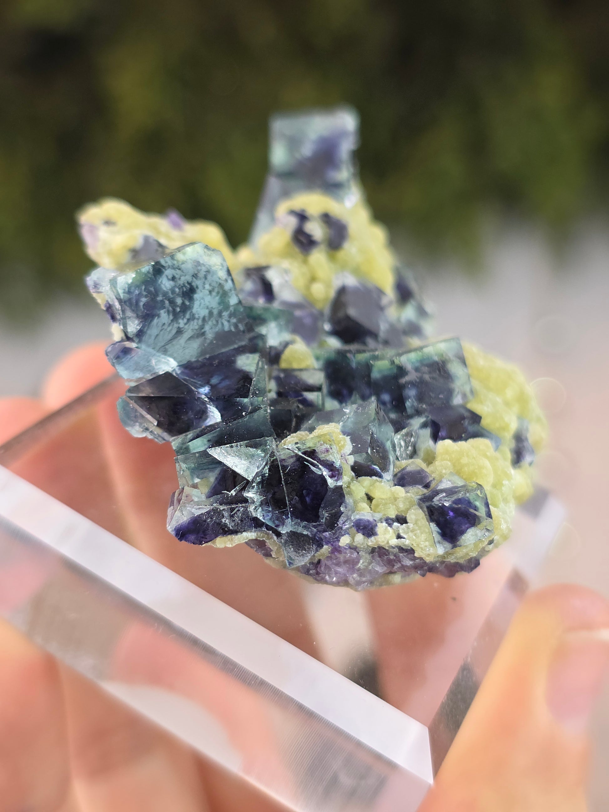 High Quality Clear Yindu Fluorite on Yellow Calcite - Yindu, China B